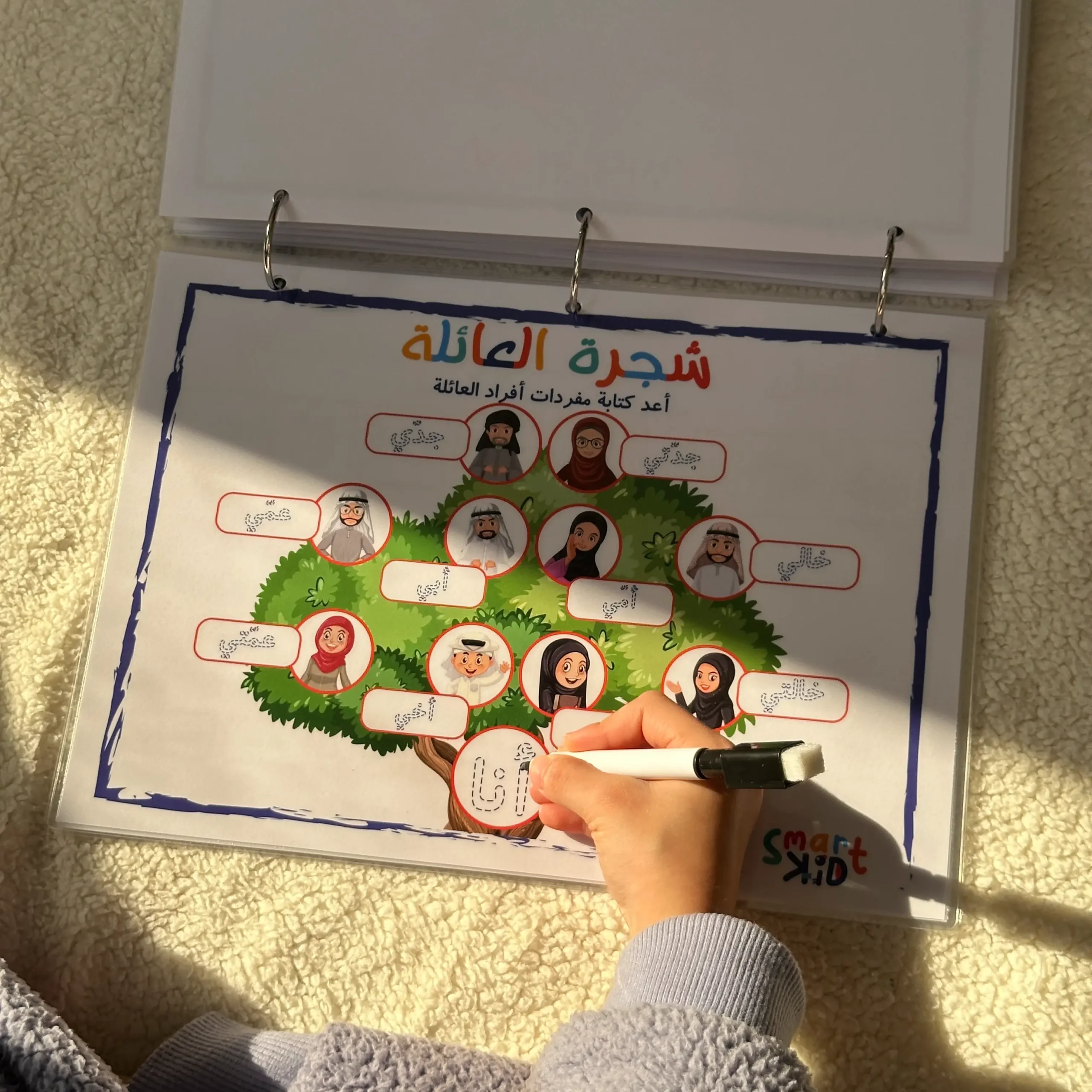 يشمل أنشطة مثل: كتابة الاسم الكامل، أركان الإسلام، شجرة العائلة، قراءة الساعة، الجمع والطرح، المذكر والمؤنث، متاهة الحروف، شهور السنة وأكثر!