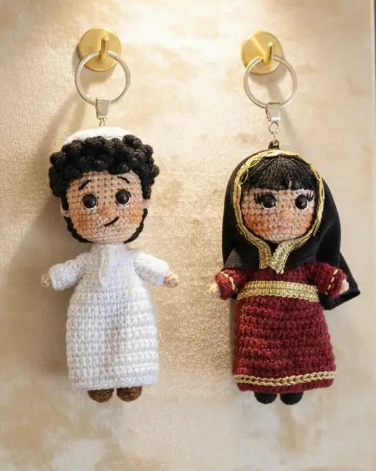 حكايات قطرية تُحاك يدويًا بحب، تقدم سمارت كيد تعليقة أموجرومي تُحاك يدويًا غرزةً بغرزة، مستوحاة من تفاصيل الهوية القطرية الأصيلة بلمسة عصرية دافئة.