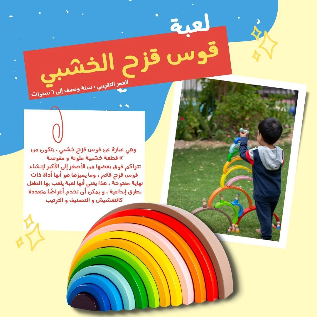 2️⃣ قوس قزح الخشبي – ١٢ قطعة