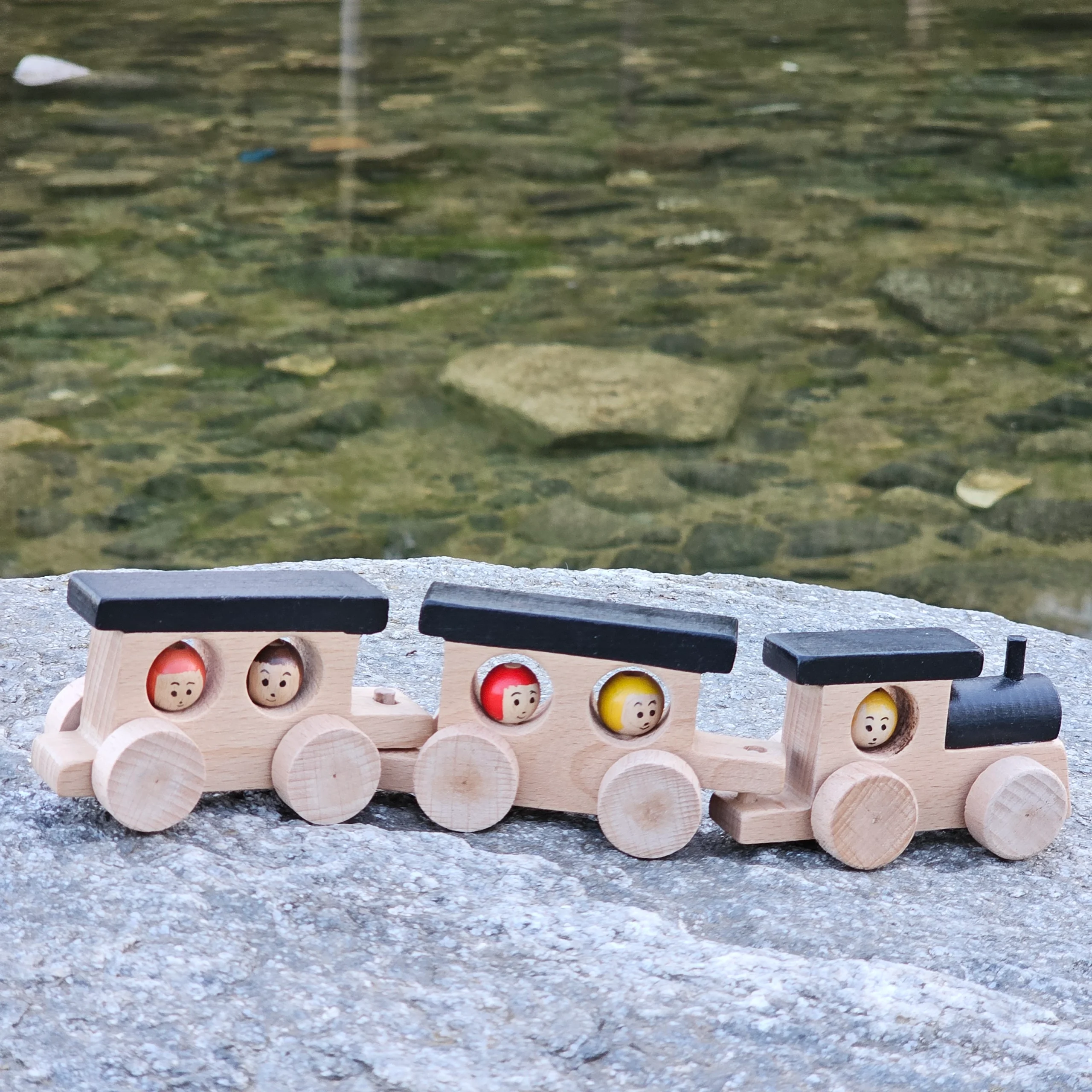 باص أطفال، سيارة شرطة، سيارة إسعاف، سيارة عائلية، طائرة هليكوبتر، وقطار خشبي مكوّن من عربات منفصلة يمكن تركيبها بسهولة.