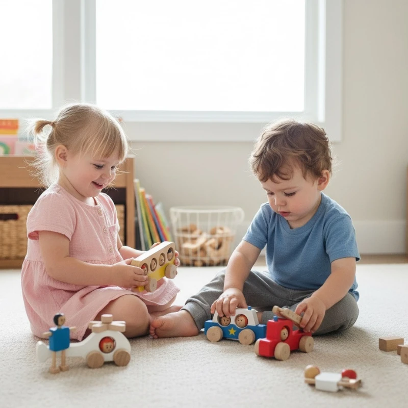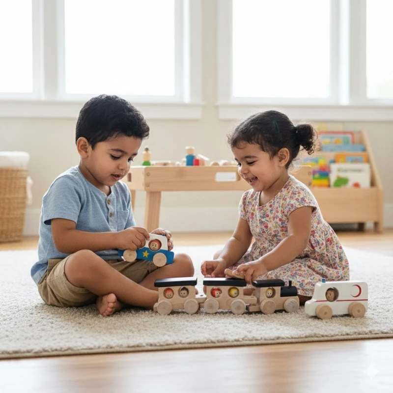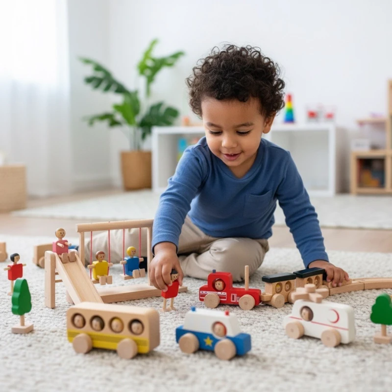امنحي طفلك عالمًا كاملًا من المرح والخيال مع مجموعة اللعب التخيّلي الخشبية المصمّمة لتجربة لعب مفتوحة، واقعية، وآمنة.